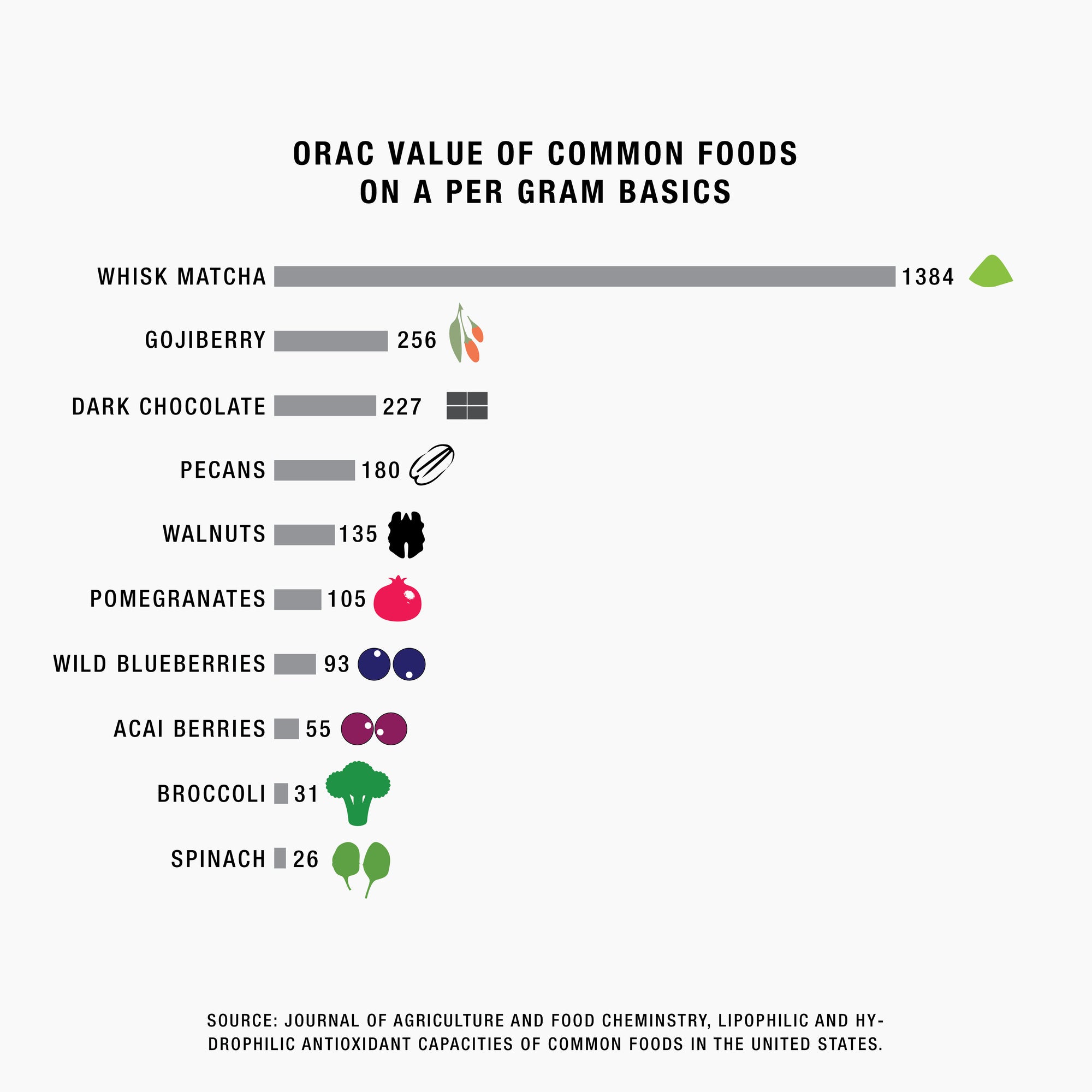 A chart below shows matcha's antioxidant capacity compared to other superfoods.